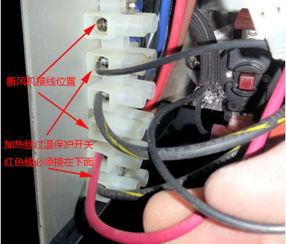 此處加熱絲和鼓風(fēng)機(jī)的電源線位置一定要記住接反了會(huì)出問(wèn)題,必要時(shí)先拍照再拆線