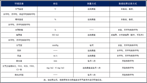 表1試驗環(huán)境因素測量方式及記錄規(guī)定